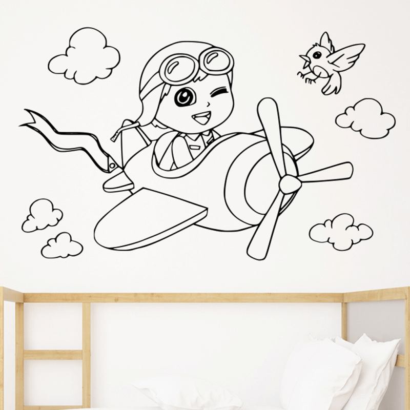 Tato samolepicí dekorace na zeď je dokonalým doplňkem do dětského pokoje pro kluky. Kdo by odolal pohledu na malého chlapce, který pilotuje vlastní letadlo? Tato samolepka je okouzlujícím prvkem, který oživí interiér. Připravte se na nadšení a roztomilost, které tato samolepka přinese do dětského pokoje vašeho malého letce.