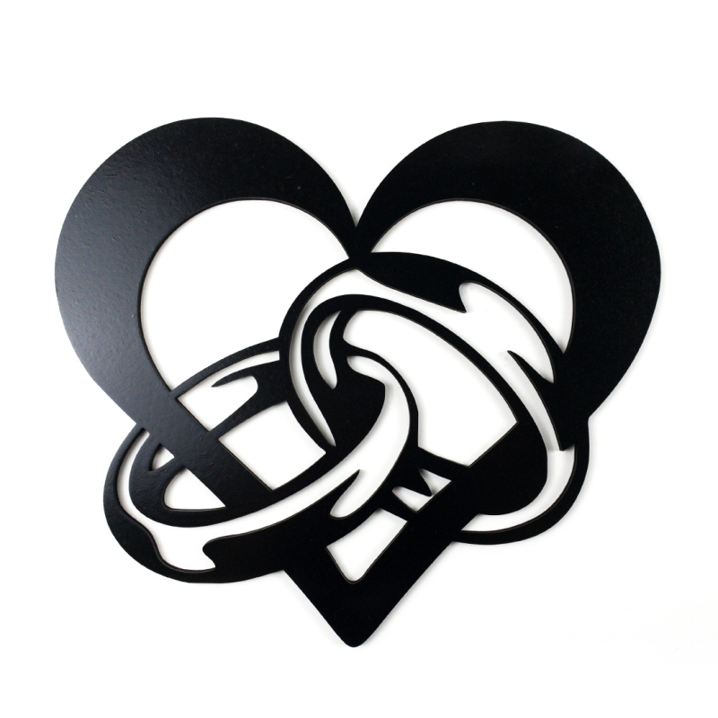 Dřevěná nástěnná dekorace Snubní prsteny v srdci černá.