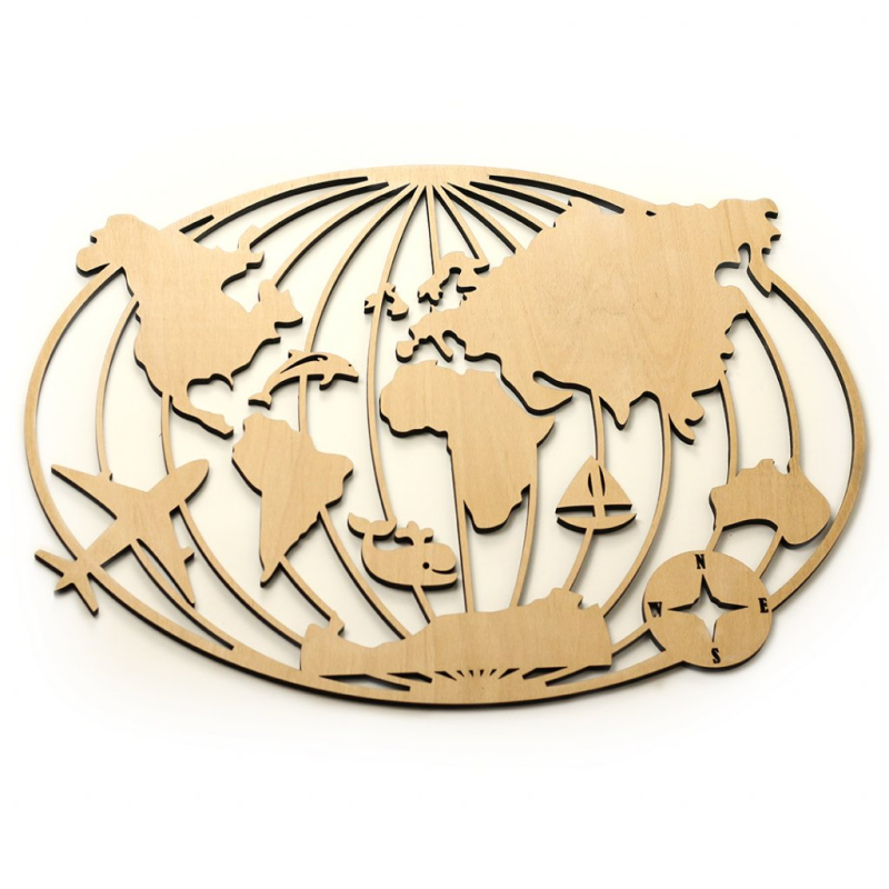 Tato originální dřevěná dekorace na zeď se bude krásně vyjímat v dětském pokoji. S designem Zeměkoule, na které je vyobrazená např. velryba, letadlo, plachetnice, delfín, udělá z vašich dětí malé námořníky, které mohou obeplout svět. Naše planeta je plná krásných a okouzlujících míst, kouzelných měst a pozoruhodných tvorů, tak ji pojďte prozkoumat.