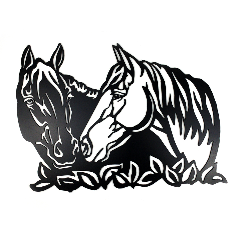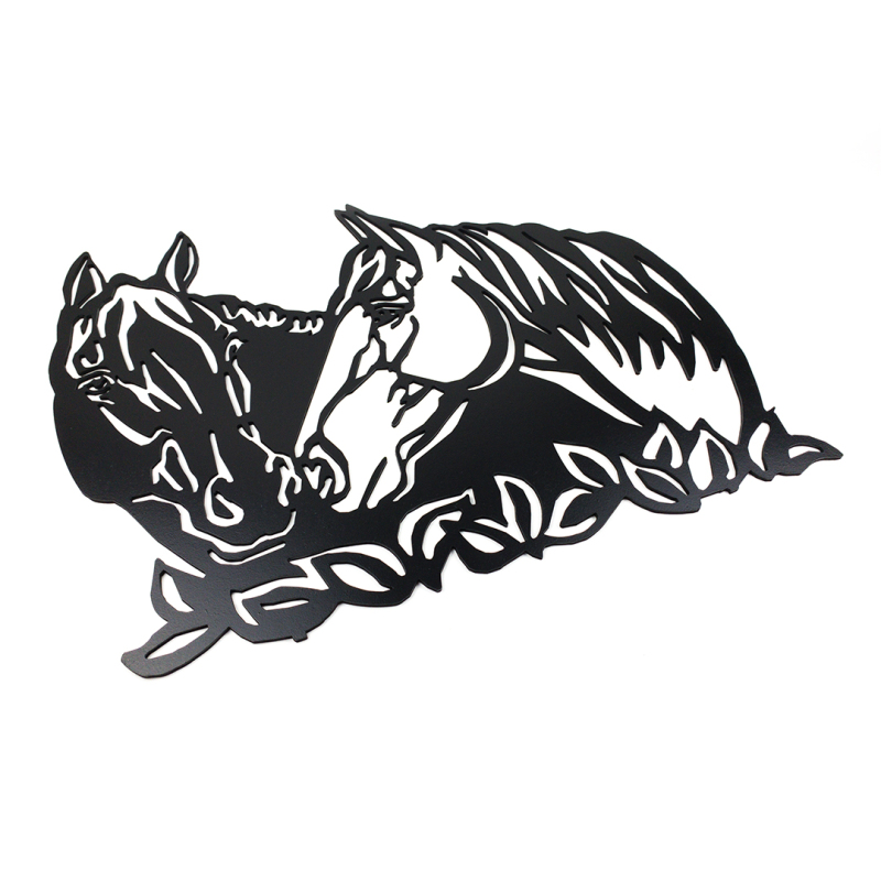 Dřevěná nástěnná dekorace Dvě koňské hlavy černá.
