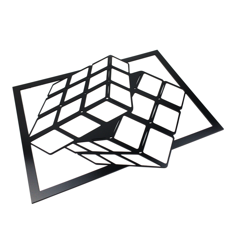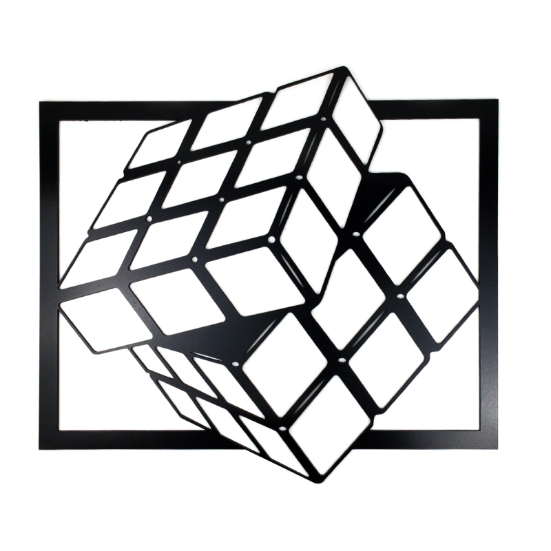 Dřevěná nástěnná dekorace Rubikova kostka černá.