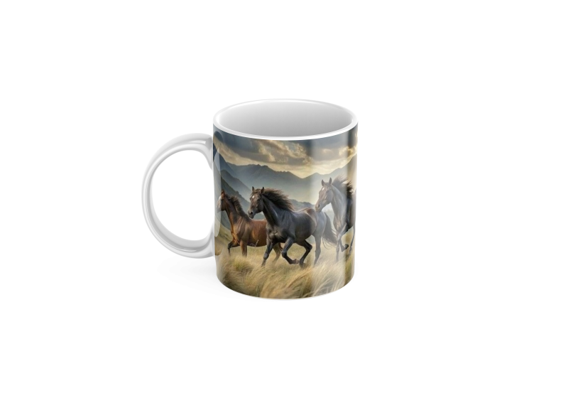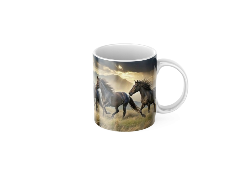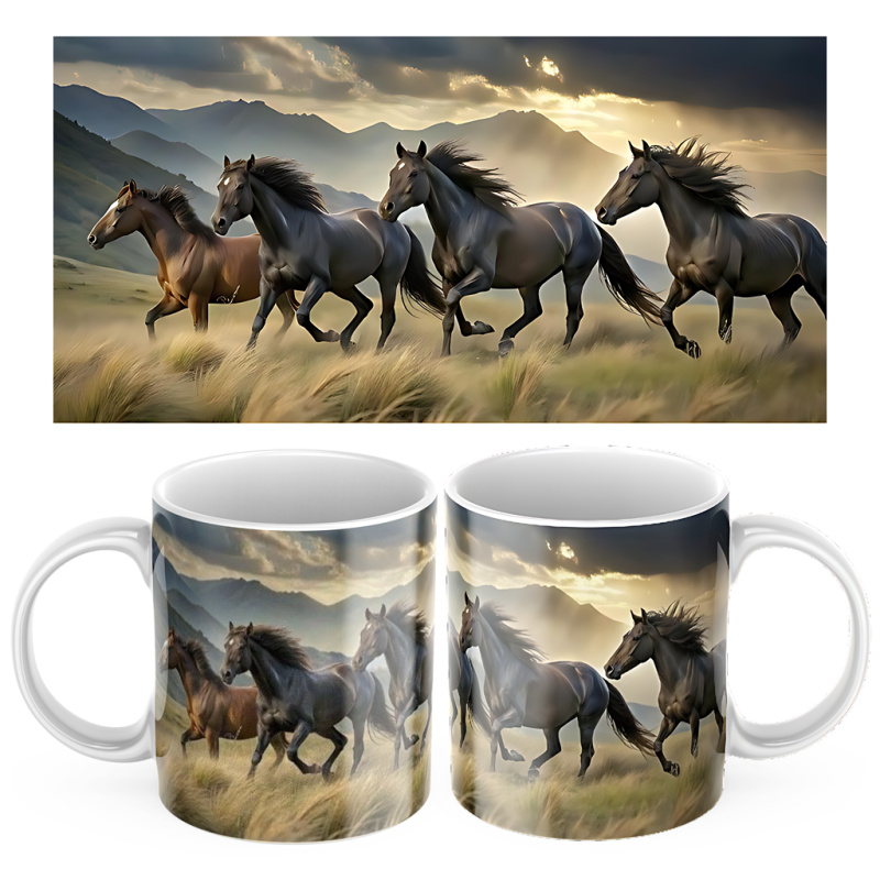 Keramický Hrníček Koně a Hory