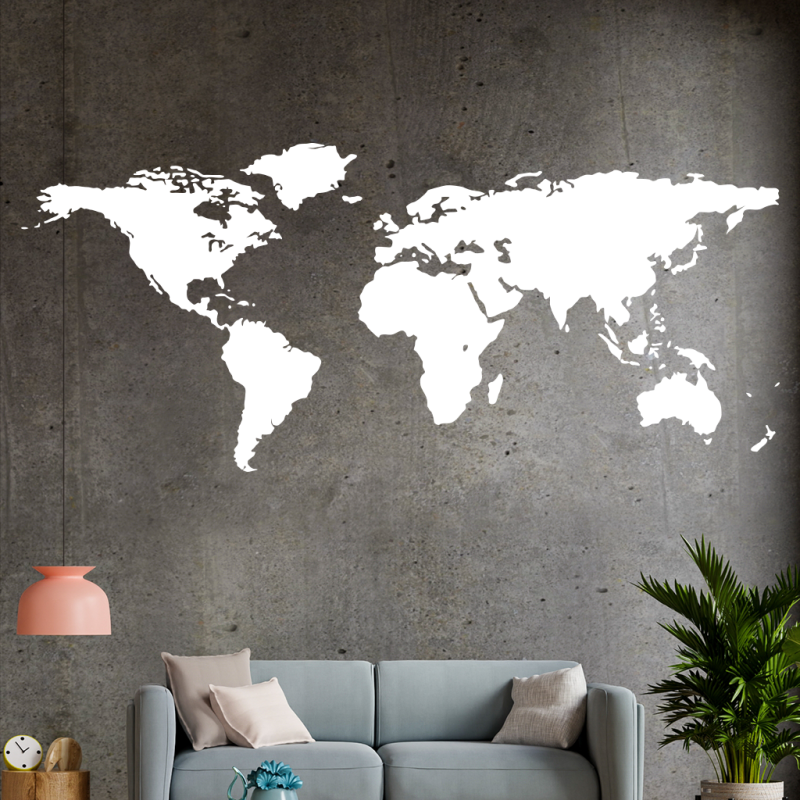 Tato originální samolepka na zeď je perfektním designovým doplňkem do vašeho bytu či interiéru, který přináší moderní vzhled a dokáže oživit vaše stěny. Tato jedinečná samolepka je skvělým dekorem do obývacího pokoje, ložnice, dětského pokoje či do pracovny, kde mapa světa vnese do Vašeho prostoru zajímavý prvek.