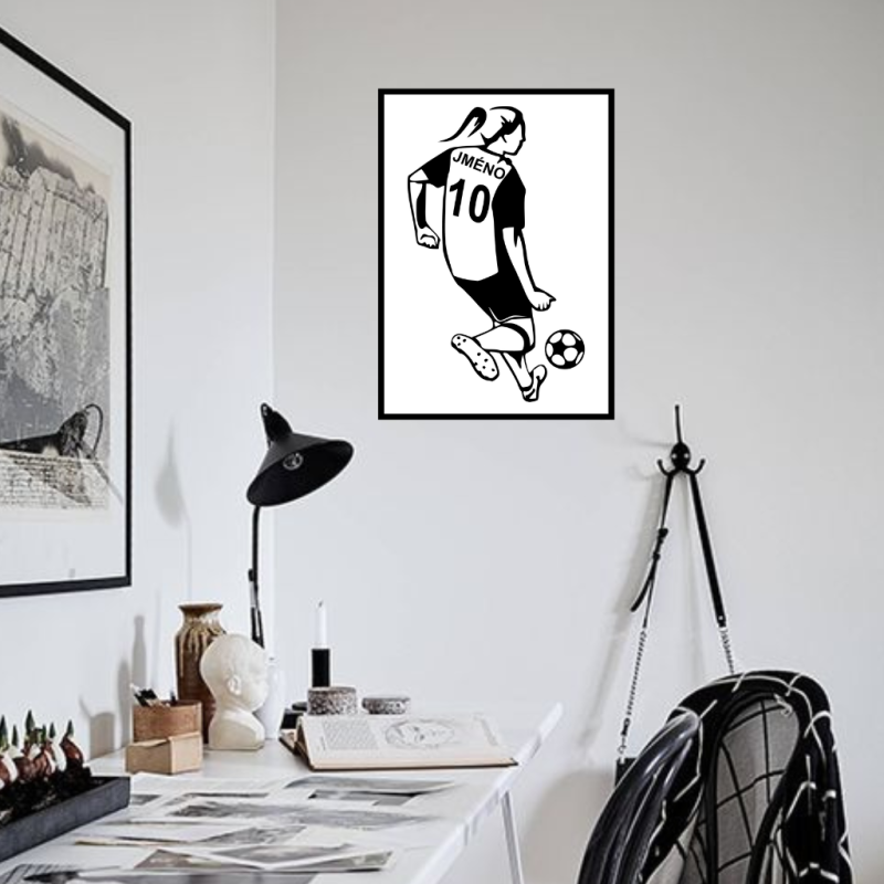 Tento originální obraz je ideální volbou, jak oživit interiér dětského pokoje a je vhodná pro všechny fanoušky a hráčky fotbalu. Oživte svůj interiér s naším exkluzivním obrazem fotbalistky. Její design připomínající postavu fotbalistky skvěle zapadne do prostoru každého dětského pokoje, ložnice, pracovny, obývacího pokoje a přinese autentickou atmosféru. Obraz je určený především pro holky, které chtějí vytvořit svůj vlastní fotbalový svět. Vyberte si své jméno a číslo, které bude figurovat obraze fotbalistky.