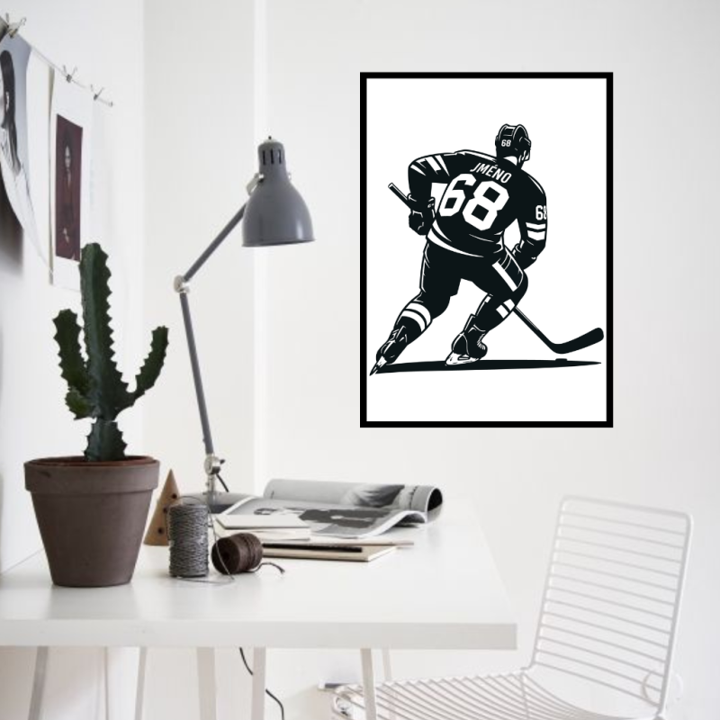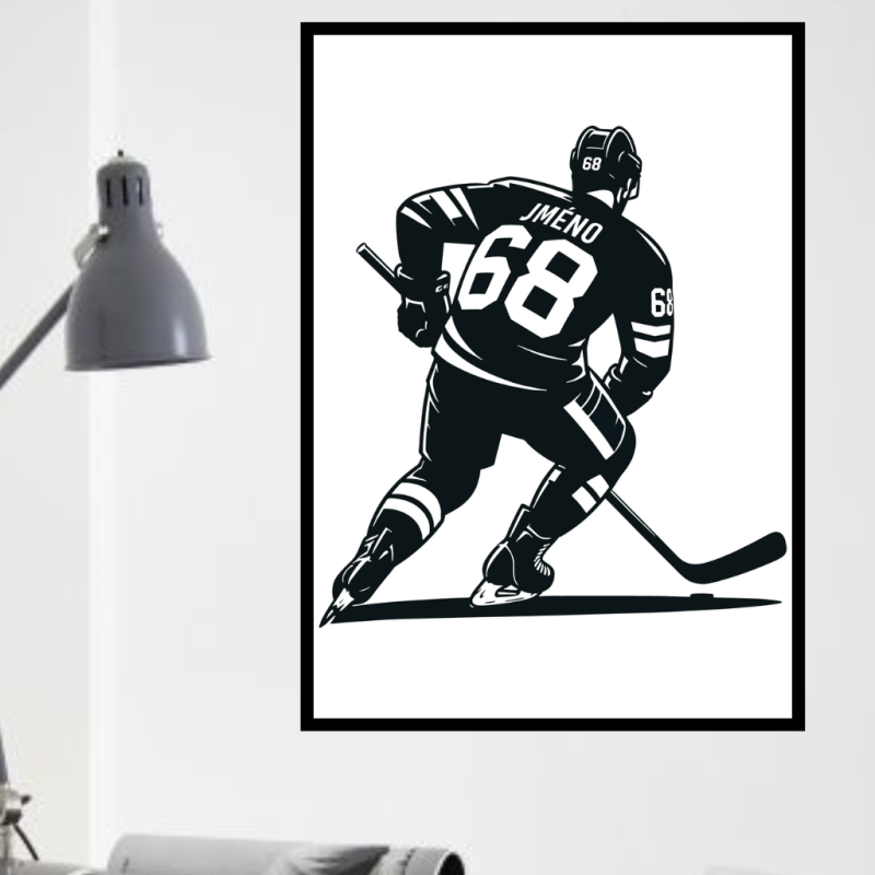 Tento originální obraz je ideální volbou, jak oživit interiér dětského pokoje a je vhodná pro všechny fanoušky a hráče hokeje. Oživte svůj interiér s naším exkluzivním obrazem hokejového hráče se jménem. Obraz je určený především pro kluky, kteří chtějí vytvořit svůj vlastní hokejový koutek. Vyberte si své jméno a číslo, které bude figurovat na hokejovém dresu obrazu a vytvořte si pravou hokejovou atmosféru bez ohledu na to, zda jste na stadionu nebo doma ve svém pohodlí.