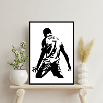 Tento originální obraz je skvělou volbou, jak oživit interiér obývacího pokoje, pracovny nebo dětského pokoje. Tuto samolepku s designem fotbalisty Cristiana Ronalda ocení malý i velký fanoušek tzv. „bílého baletu“. Ronaldo je portugalský fotbalista, útočník saúdskoarabského klubu Al-Nassr FC a kapitán portugalské reprezentace, s níž vyhrál Mistrovství Evropy 2016 a premiérový ročník Ligy národů 2018/2019. Vytvořte si fotbalovou atmosféru přímo ve svém pokoji s tímto oblíbeným fotbalistou.