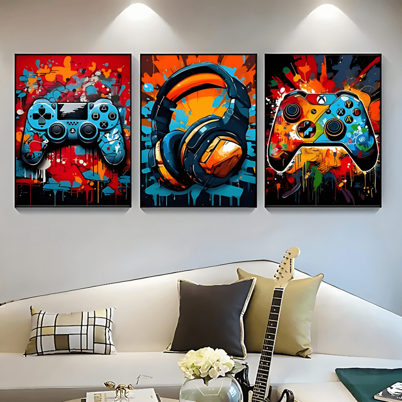 Tento originální obraz na plátně v rámu je vhodná do teenager pokojů, herny nebo dětských pokojů. Ale není to jen pro teenagery - je vhodná pro všechny gamery, kteří mají vášeň pro videohry. Její jedinečný design s motivem dvou Joysticku a sluchátek poskytne Vašemu prostoru jedinečný nádech. Je to ideální způsob, jak vyjádřit svoji vášeň o videohry a přidat do místnosti herní atmosféru.
