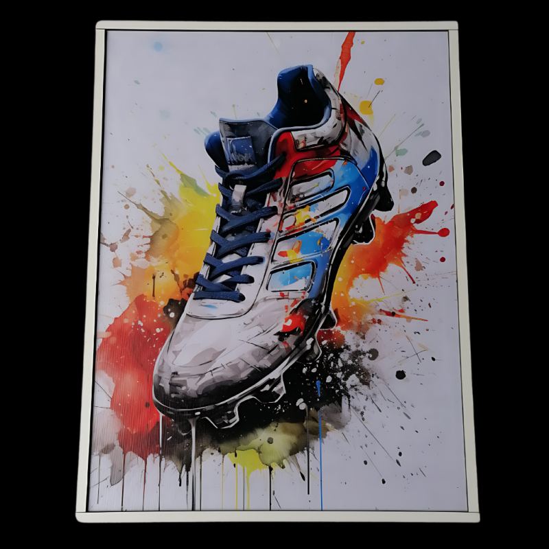 Obraz na plátně v rámu s motivem kopačky je ideální volbou pro všechny příznivce fotbalu. Tento obraz je vhodný do dětských pokojů, obývacích pokojů nebo pracoven, kde dokáže oživit zdi a dodat prostoru energii a vášeň pro tento skvělý sport. Díky tomuto obrazu se stane z vašeho interiéru dekorace, která rozzáří stěny a přinese do místnosti atmosféru fotbalového zápasu.