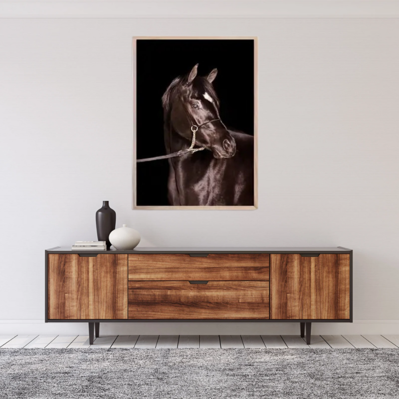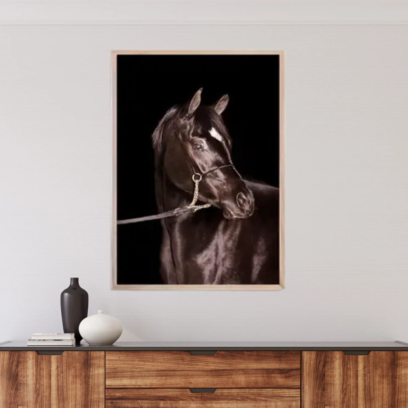 Obraz na plátně v rámu - Kůň tmavě hnědý