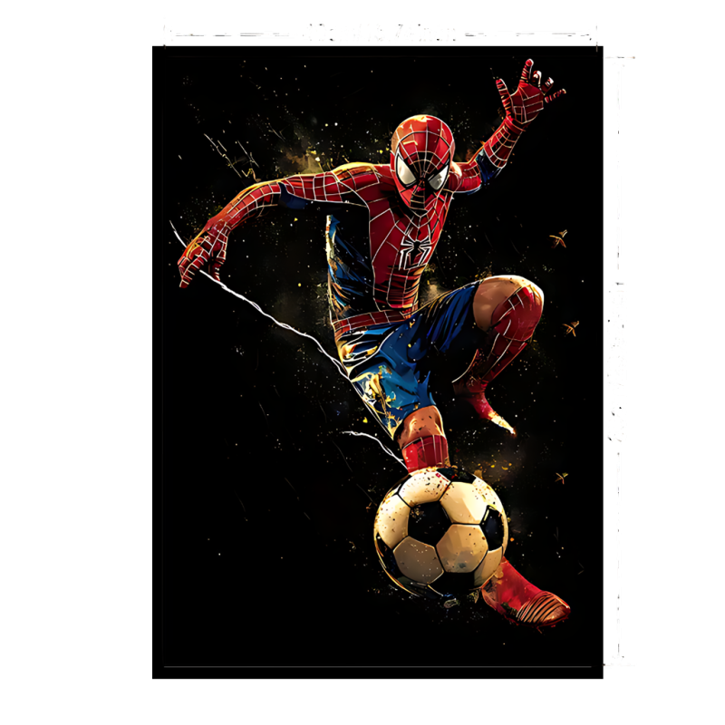 Každý zná Spidermana, ikonickou postavu komiksů. A co když navíc hraje fotbal? Tato dekorace je určena pro všechny fanoušky komiksových postav a fotbalu. Skvěle se hodí do obývacího pokoje, dětského pokoje nebo pracovny. Nechte zdi rozzářit s tímto originálním obrazem, který zaujme každého na první pohled.