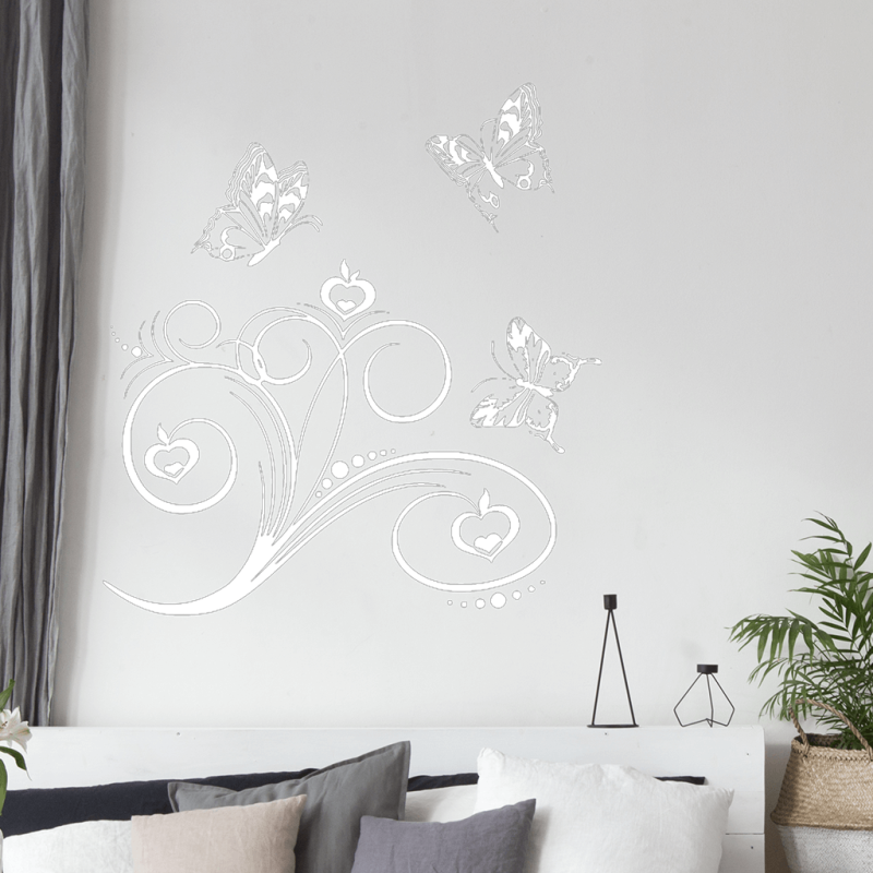 Tato samolepicí dekorace na zeď Ornament s motýlky se bude perfektně hodit na zdi obývacího pokoje, ložnice nebo dívčího pokoje. Nechte se vtáhnout do jarní atmosféry s naší samolepkou, kde poletují motýlci.