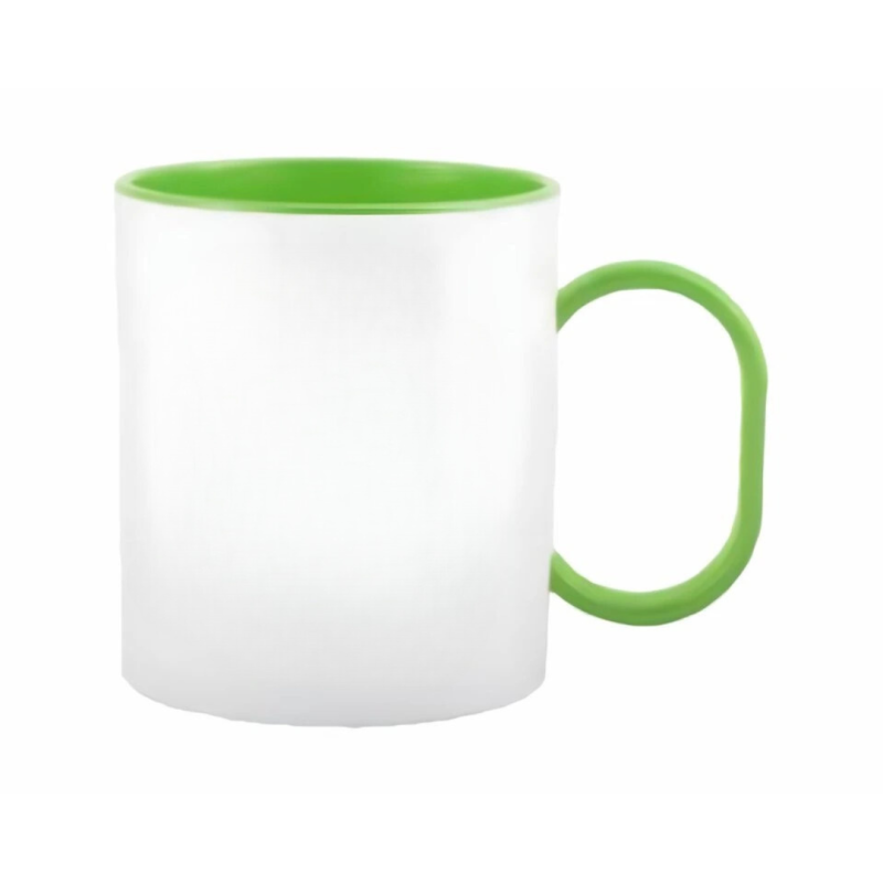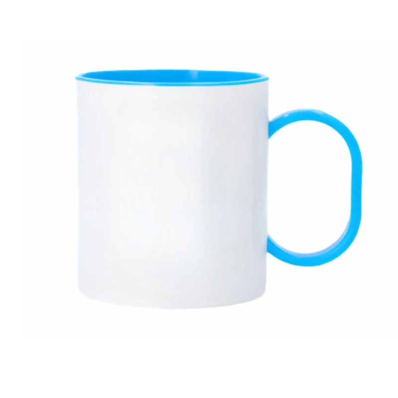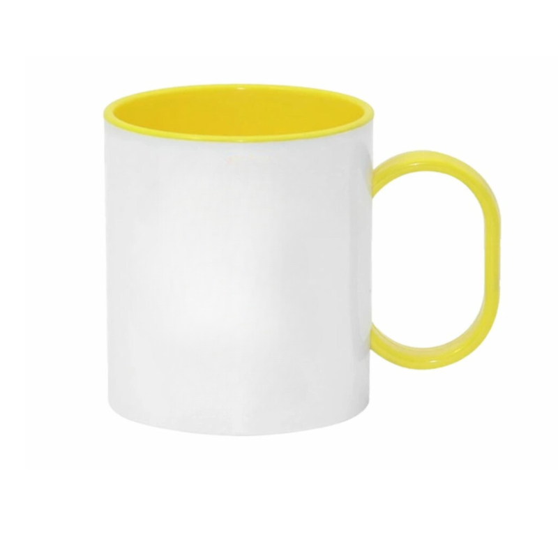 Plastový hrnek s vlastním potiskem s barevným vnitřkem a uchem