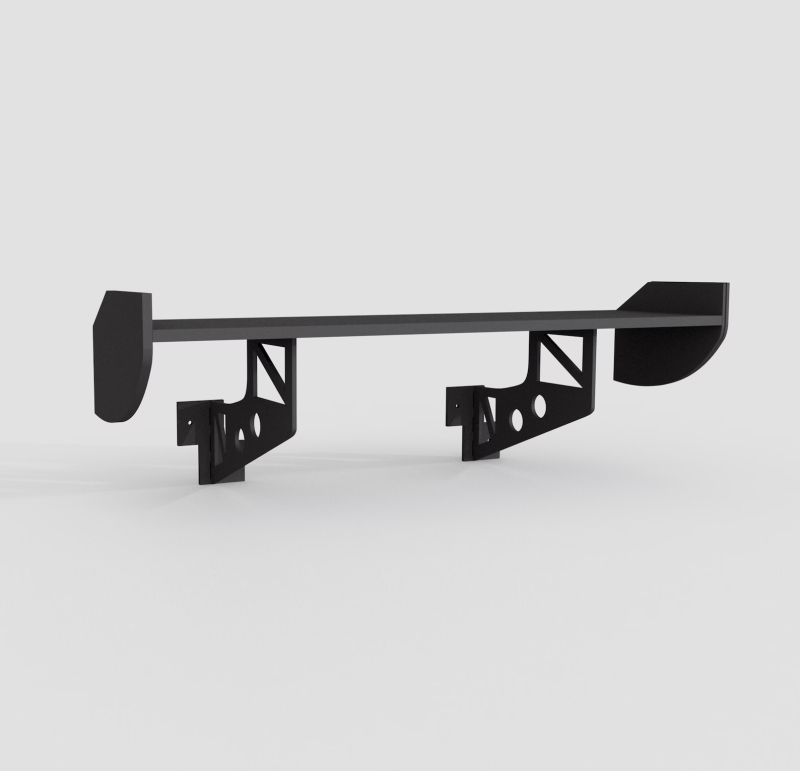 Polička je vyrobena z odolné MDF desky v elegantní, hluboce černé barvě. Její tvar věrně imituje aerodynamiku spoileru, což z ní dělá ideální doplňek do pracovny, obývacího pokoje nebo garáže každého fanouška rychlých kol.