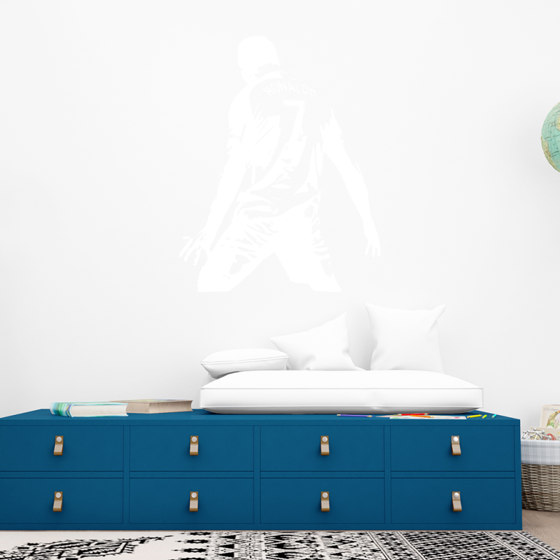Tato originální samolepka na zeď je skvělou volbou, jak oživit interiér obývacího pokoje, pracovny nebo dětského pokoje. Tuto samolepku s designem fotbalisty Cristiana Ronalda ocení malý i velký fanoušek tzv. „bílého baletu“. Ronaldo je portugalský fotbalista, útočník saúdskoarabského klubu Al-Nassr FC a kapitán portugalské reprezentace, s níž vyhrál Mistrovství Evropy 2016 a premiérový ročník Ligy národů 2018/2019. Vytvořte si fotbalovou atmosféru přímo ve svém pokoji!