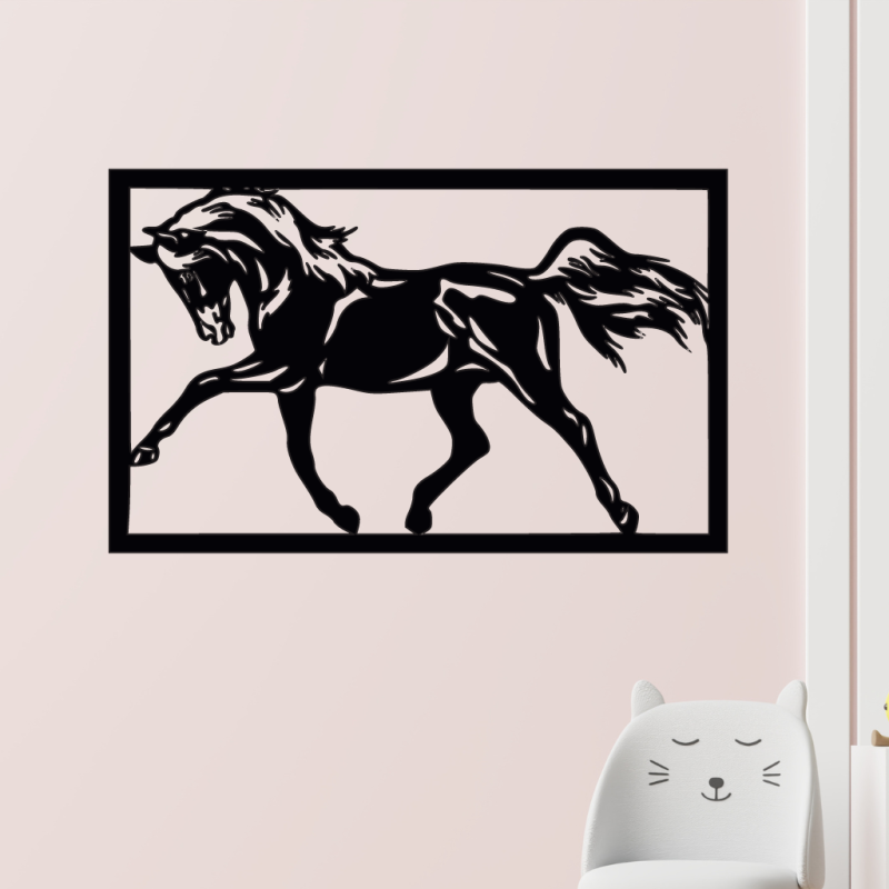 Nechte se unést do světa koní s touto originální samolepkou s motivem koně v rámečku. Tato samolepka vás přenese do světa koní a přinese do vašeho domova nový dech života. Tato samolepka je vhodná do dětského pokoje, obývacího pokoje nebo do ložnice, kde se stane skvělým doplňkem každého interiéru.