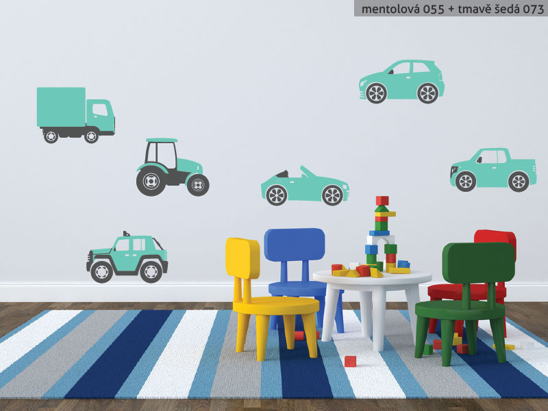 Autíček není v pokoji malého uličníka nikdy dost. S autíčky je totiž při hře největší legrace. Pokud už vám ale začínají prostory ke skladování přetékat, sáhněte raději po autíčkové dekoraci – stylových samolepkách ve tvaru různých vozítek. Sada pestrobarevných samolepek v animovaném stylu zahrnuje jak barevná osobní auta, tak třeba i nákladní auto nebo traktor, který děti jednoduše fascinuje. Autíčka můžete nalepit libovolně po stěně i nábytku, a svým dětem tak přinést další nové podněty k rozvoji jejich fantazie.