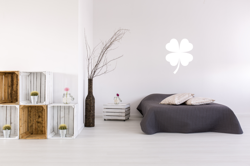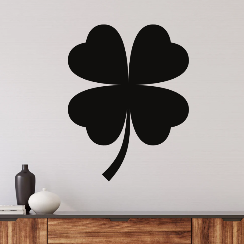 Čtyřlístek. Samolepka se čtyřlístkem, která je vhodná do ložnice, obývacího pokoje nebo pracovny. Samolepky vyrábíme z kvalitních německých folií. Samolepky dodáváme včetně přenosové folie pro snadné nalepení.