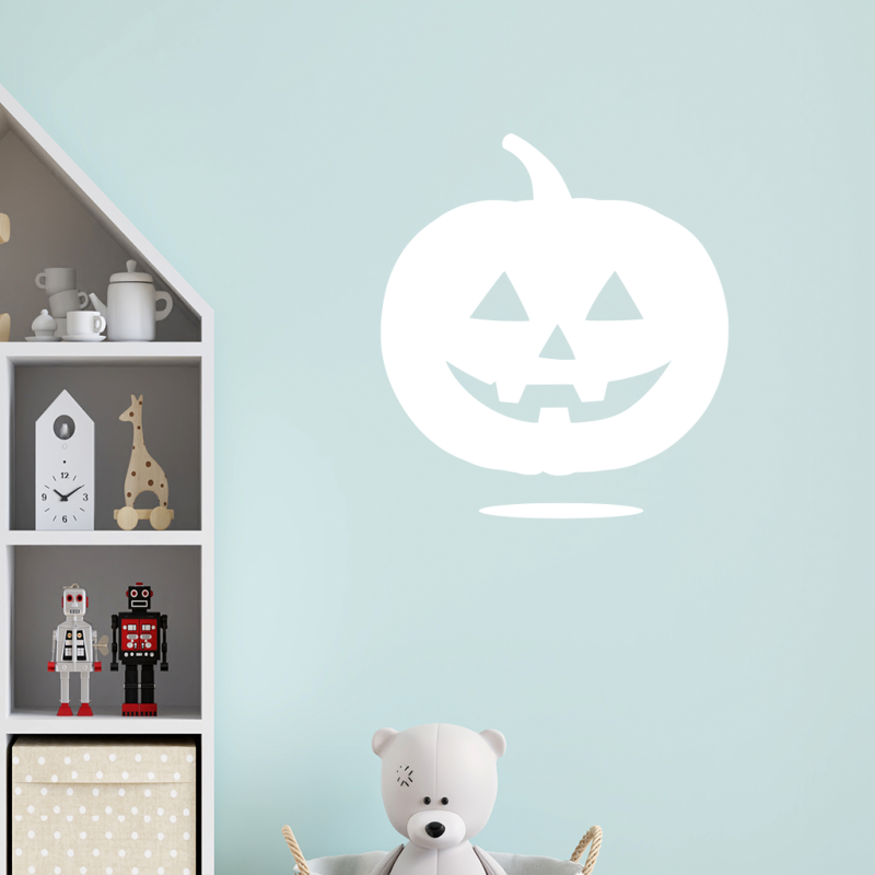 Dýně na Halloween. Samoleka obsahuje dýni i stín pod ní. Je vhodná do ložnice, obývacího pokoje nebo pracovny. Samolepky vyrábíme z kvalitních německých folií. Samolepky dodáváme včetně přenosové folie pro snadné nalepení.