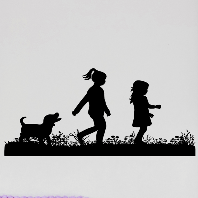 Holčičky s pejskem- samolepka dvou holčiček s pejskem pro malé princezny do dětskéo pokoje. Samolepku si můžete nalepit také na dveře, nábytek či sklo. Samolepky dodáváme včetně přenosové fólie pro snadné nalepení. Stačí si jen vybrat barvu a velikost.
