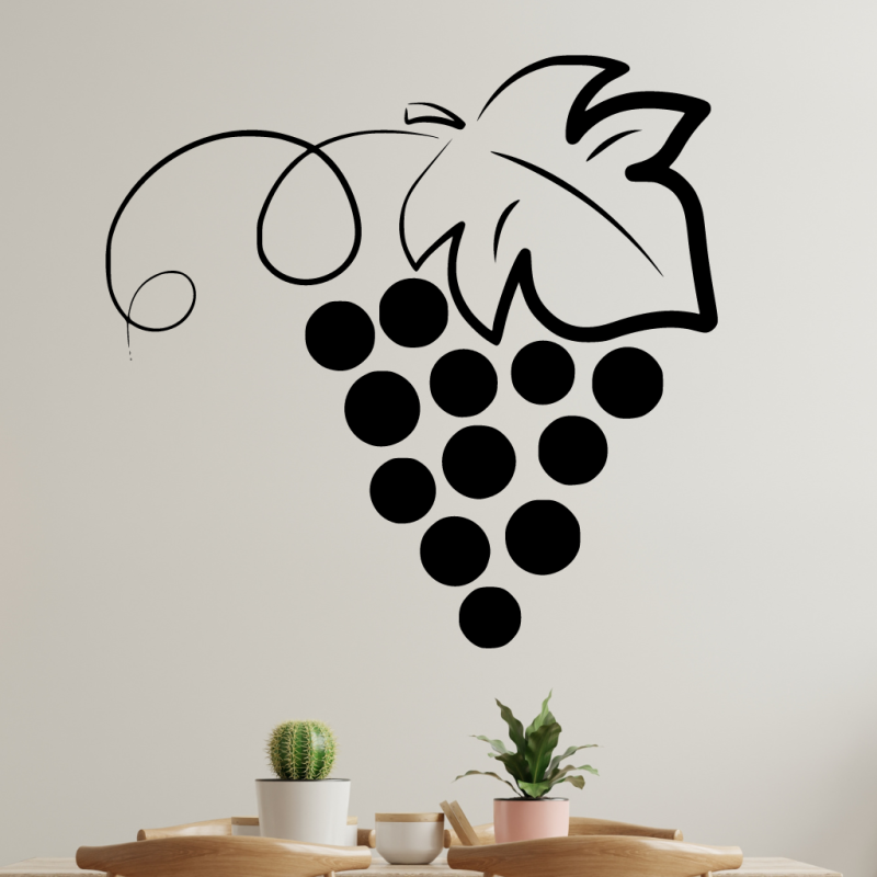 Hrozno trs- samolepka, která se skvěle hodí do kuchyně,ale také do obývacího pokoje. Stačí si jen vybrat barvu a velikost samolepky. Samolepky dodáváme včetně přenosové fólie pro snadné nalepní. Samolepku si můžete nalepit také na dveře, nábytek či sklo.