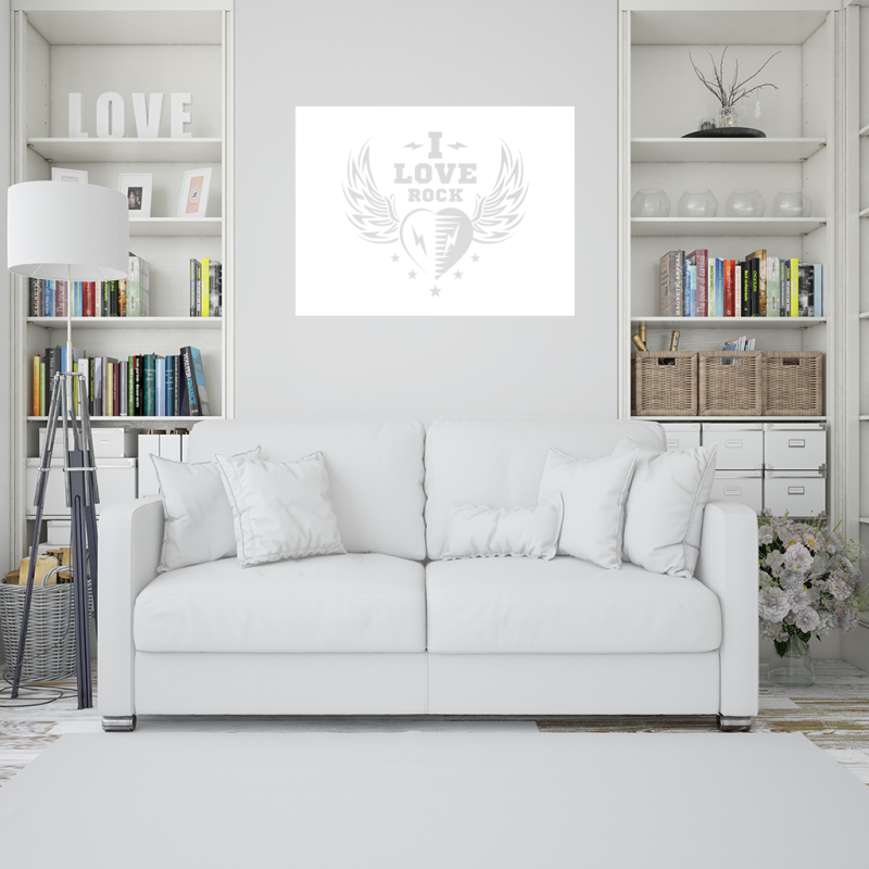 I love rock. Samolepka pro všechnyzapálené rockery, která je vhodná do ložnice, obývacího pokoje nebo pracovny. Samolepky vyrábíme z kvalitních německých folií. Samolepky dodáváme včetně přenosové folie pro snadné nalepení.