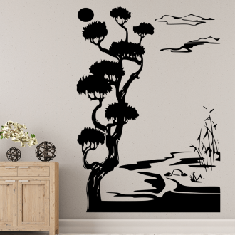 Japonský obraz. Tato japonsky laděná samolepka obsahuje krajinou, dva mraky i slunce. Je vhodná do ložnice, obývacího pokoje nebo pracovny. Samolepky vyrábíme z kvalitních německých folií. Samolepky dodáváme včetně přenosové folie pro snadné nalepení.
