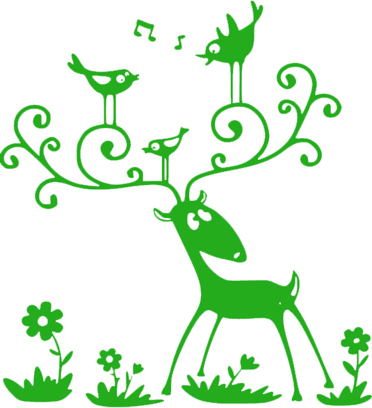 Jelen s ptáčky. Krásná pohádková samolepka s jelenem, notami, trsy trávy i kytkami. Je vhodná především do dětského pokoje, ale fantazii se meze nekladou. Samolepky vyrábíme z kvalitních německých folií. Samolepky dodáváme včetně přenosové folie pro snadné nalepení.