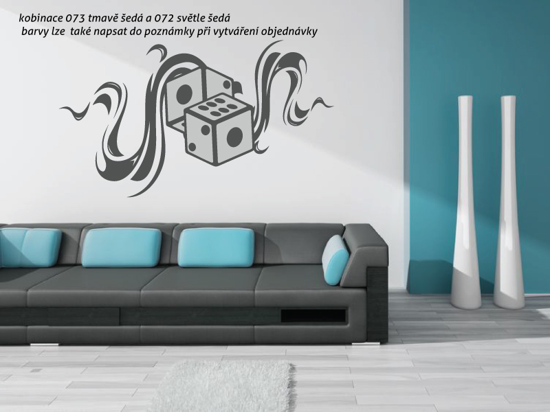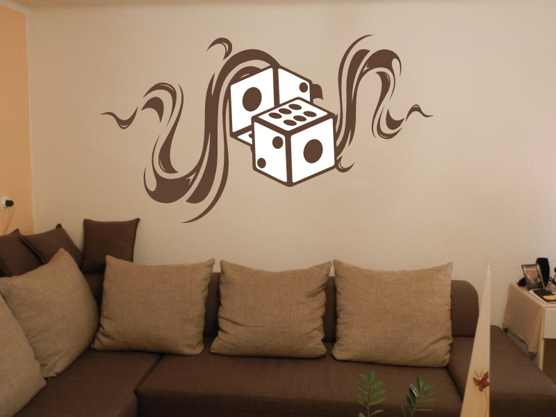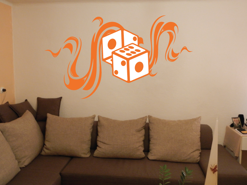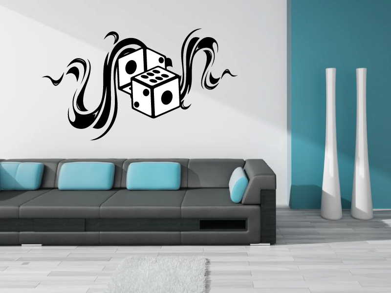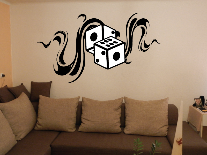 Moderně pojatá dekorace na zeď, zobrazující vržené kostky. Neváhejte a ozdobte si svojí domácnost, klub či hernu.