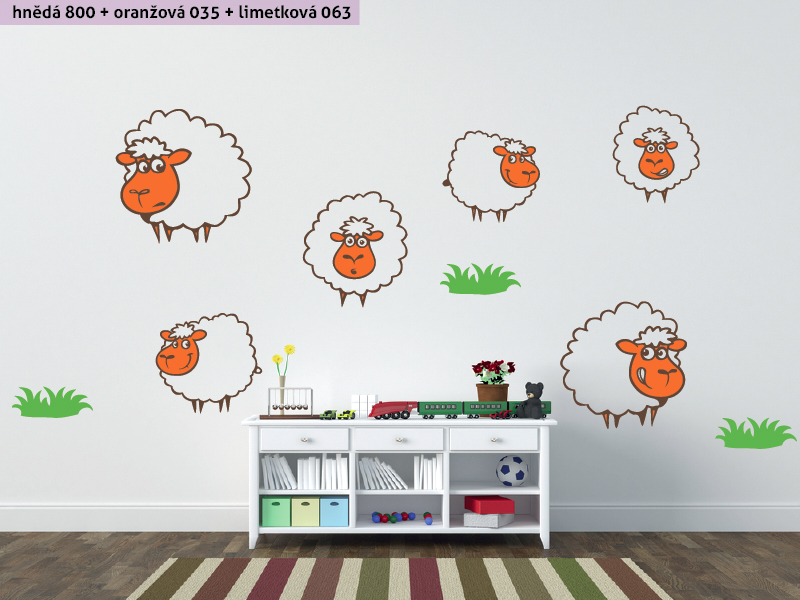 Oblíbený motiv oveček, pro ty nejmenší. Motiv se zkládá ze tří barev a hodí se na bílou zeď.Barevné složení prosím napište do poznámky při uzavírání objednávky.