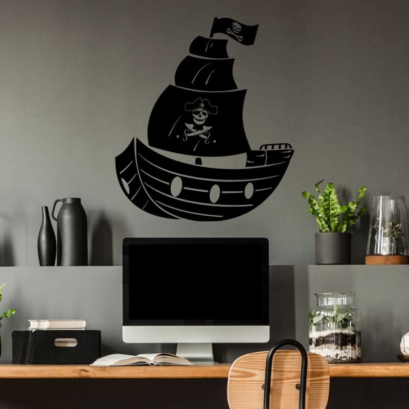 Pirátská loď- tato velmi oblíbená samolepka se skvěle hodí do dětského pokoje. Vašim dětěm udělá rozhodně radost. Stačí si jen vybrat barvu a velikost. Samolepky dodáváme včetně přenosové fólie pro snadné nalepení. Samolepku můžete také nalepit na dveře, nábytek či sklo.