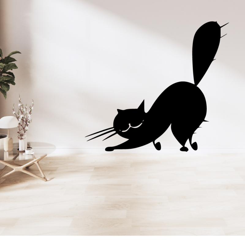 Protahující se kočka. Roztomilá samolepka kočky, která je vhodná do ložnice, obývacího pokoje nebo dětského pokoje. Samolepky vyrábíme z kvalitních německých folií. Samolepky dodáváme včetně přenosové folie pro snadné nalepení.
