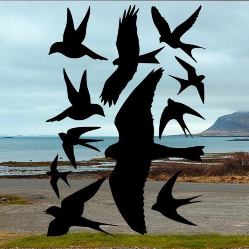 Tato samolepící dekorace Silueta dravce, proti narážení ptáků do skla je skvělým řešením pro ochranu ptáků před narážením do skleněných ploch, což je způsobeno vysokou rychlosti letu a skutečností, že většina ptáku má umístěny oči po stranách hlavy a proto vidí nejostřeji do stran. Přednostně tak vnímají to co je kolem nich a pod nimi, ale už řádně nevěnují pozornost tomu co je před nimi. Tento produkt nabízí efektivní ochranu, která může pomoci snížit úmrtnost ptáků v důsledku nárazů. Samolepku si můžete nastříhat a jednotlivé části lepit podle vaší fantazie.